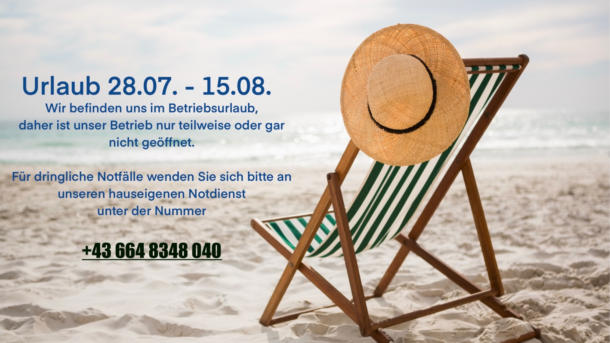 Wir möchten Sie informieren, dass wir uns vom 24.12.2025 bis einschließlich 11.01.2026 im Betriebsurlaub befinden. Unsere Räumlichkeiten bleiben in diesem Zeitraum geschlossen.
